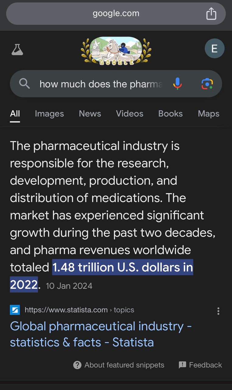 check this google facts below and see that the pharmaceutical industries makes 1.4 trillion dollar yearly, why should the sell you the cure?